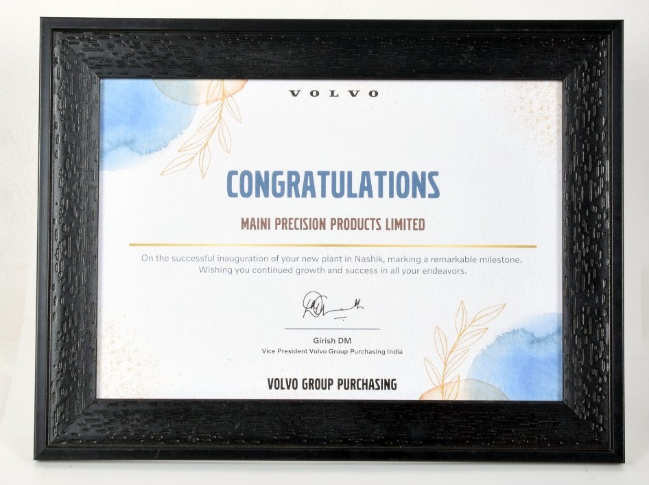 We are proud to share that Maini Precision Products Ltd. (Now JKMPTL) was congratulated by Volvo Group Purchasing on the successful inauguration of our new plant in Nashik.